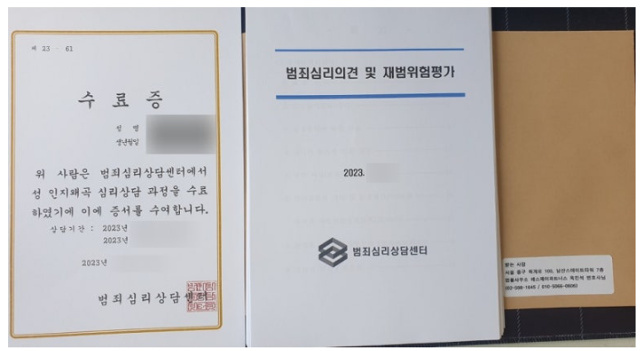 범죄심리상담이 종료되면 약 50페이지 정도의 범죄심리상담 결과 및 재범위험성평가가 변호인을 통해 법원으로 제출됩니다.